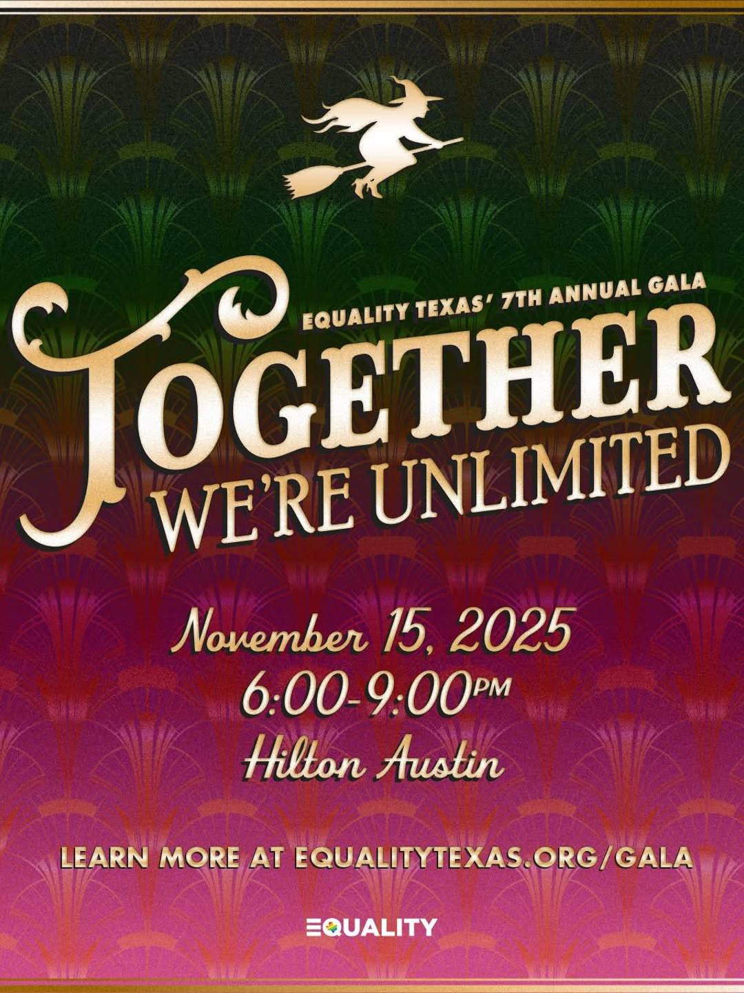 I’m so excited about the upcoming Equality Texas Gala: Together, We’re Unlimited! It’s November 15 in Austin, and I’m still freakin' out that Parents of Trans Youth is being honored as the 2025 Business Champion! So I’ll be there, my family will be there, my friends will be there ... that ballroom will be full of people who care about LGBTQIA+ equality in Texas. And if YOU care about LGBTQIA+ equality in Texas, please join me in supporting this event. If you can make it to Austin, buy a...