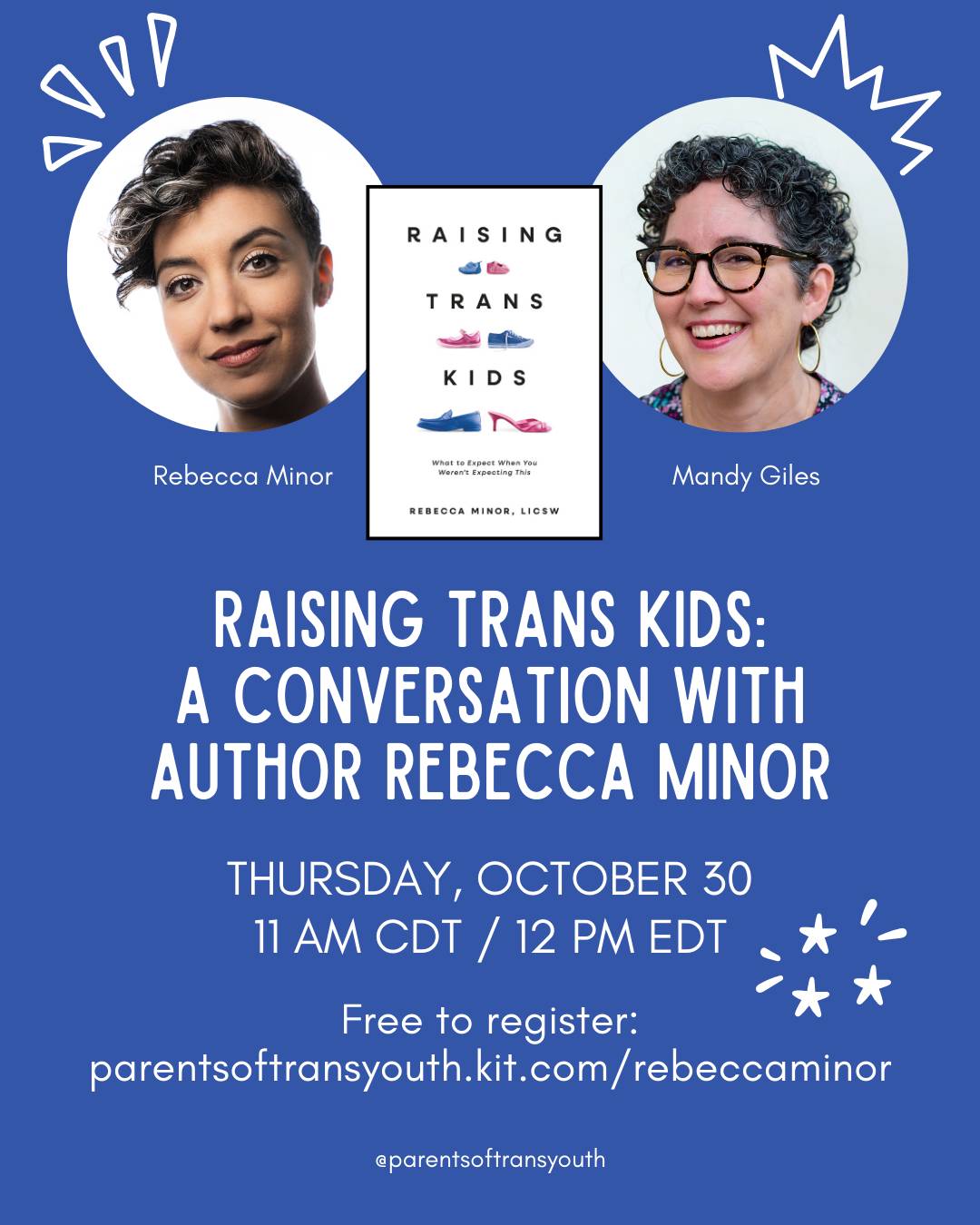 Have you signed up for the (free) Rebecca Minor event yet? On October 30, she'll be talking with us about her fantastic new book, Raising Trans Kids: What to Expect When You Weren't Expecting This. Raising Trans Kids is for every parent, grandparent, caregiver, and ally who wants to show up with love, clarity, and courage for trans kids everywhere. 📅 Thursday, October 30⏰ 12:00 pm EDT💻 Live on Zoom How to join: Step 1 - ✍️ Click the button below and fill out the form to get access to the Zoom...